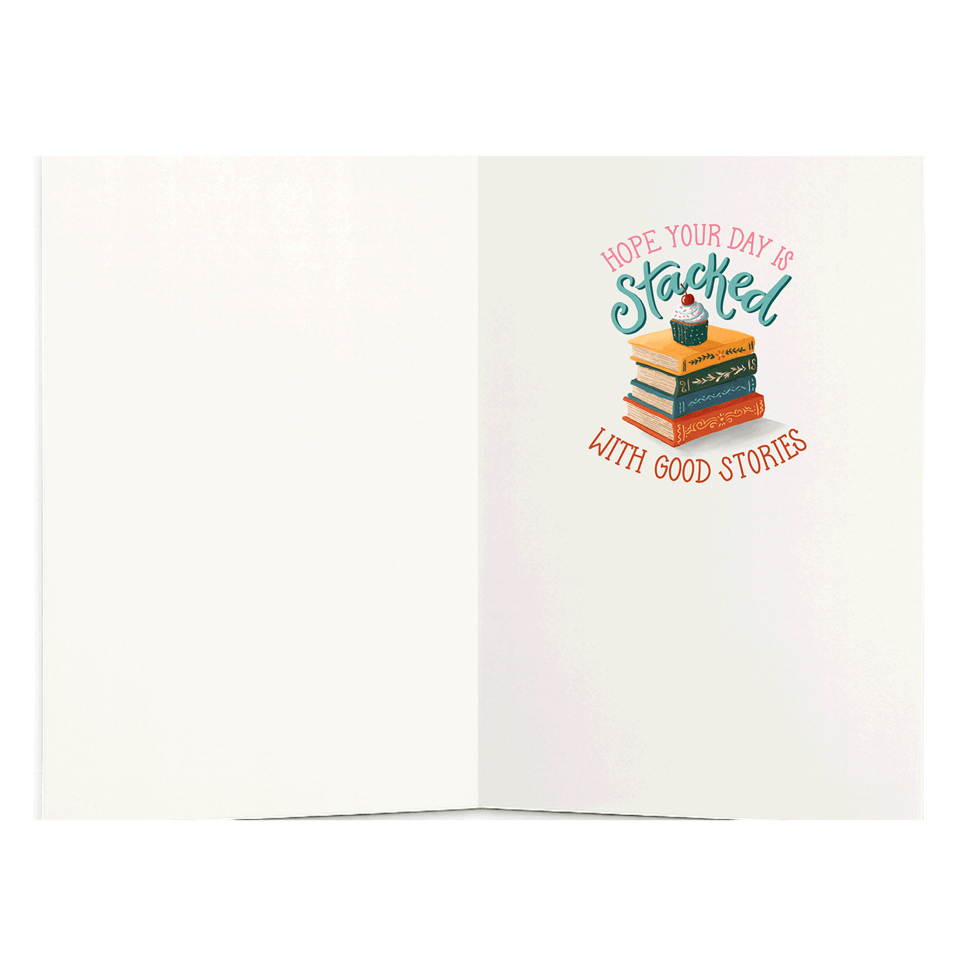 A perfect card for the book lover, coffee drinker, and cupcake enthusiast. This charming birthday design features a cozy still life of stacked stories, fresh brew, and sweet treats—celebrating the simple joys that make birthdays feel warm and personal.