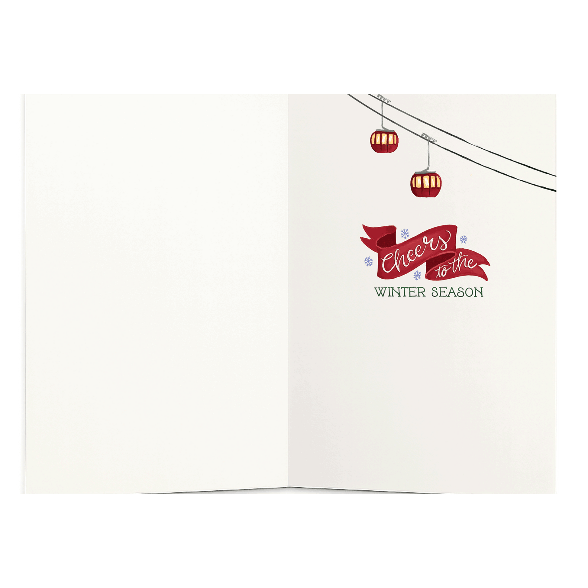 Raise a glass to powder days, cozy chalets, and good company! This cheerful winter card celebrates the best part of ski season—warming up with friends and festive drinks after a day on the slopes. A perfect toast to snowy adventures and the joy of togetherness.