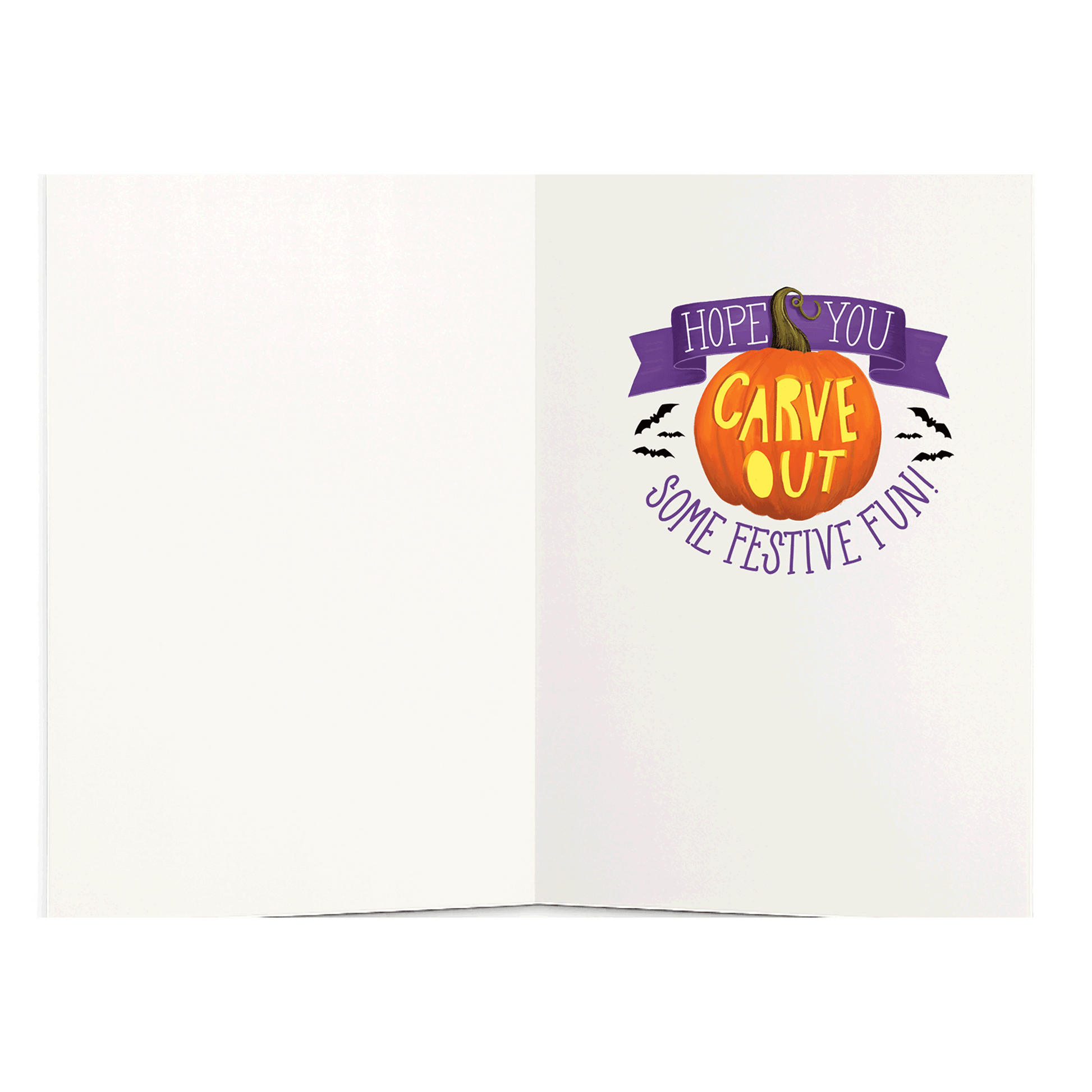 Nothing says Halloween like pumpkins on the table and jack-o’-lanterns in the making. This card captures the ritual of carving, scooping, and celebrating autumn traditions.