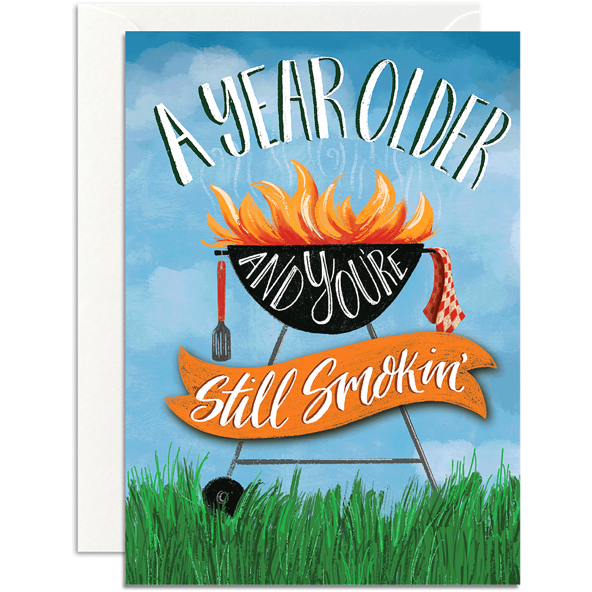 Fire up the fun with this smokin’ hot birthday card! Featuring a blazing grill and cheeky message, it’s the perfect way to let someone know they’re aging like fine barbecue—only getting better with time.
