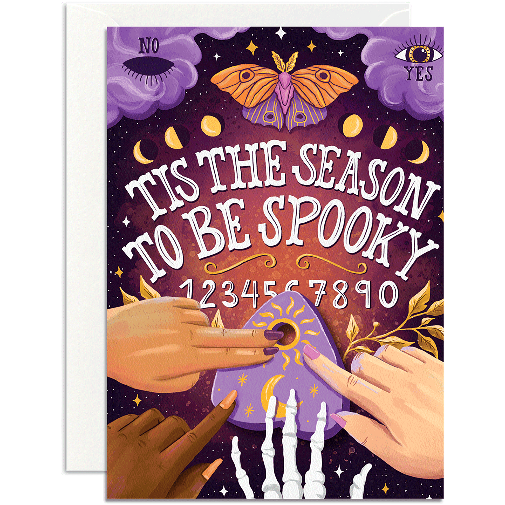 Summon the spirit of Halloween with this other worldly card. Featuring a ouija board and a skeleton hands, you'll be conjuring up some magic this season with your witchiest friends.