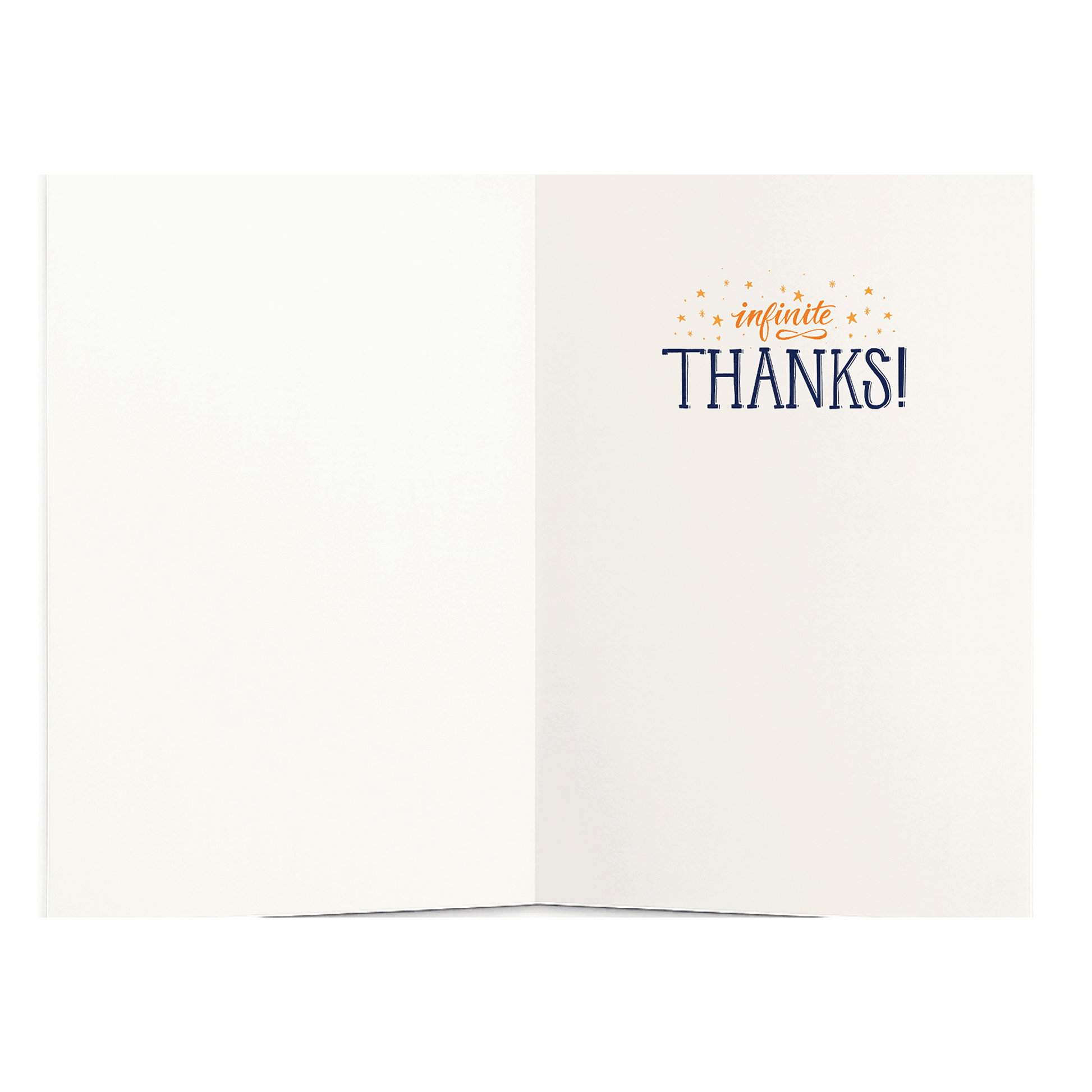 Send gratitude that’s out of this world! This playful card features an astronaut floating through space with a lifesaver ring, the perfect way to thank someone who’s helped you out when you needed it most.